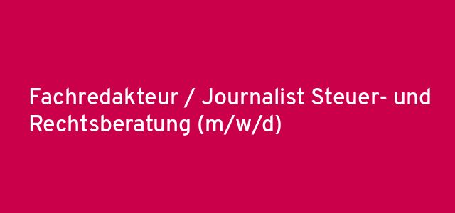 Fachredakteur / Journalist Steuer- und Rechtsberatung (m/w/d)